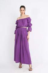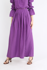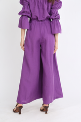 Calça pantalona cintura alta, cós de elástico para maior conforto, pregas frontais.