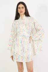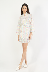 As pinceladas de característica única da designer, saem de suas telas, elaboradas em diversas camadas de tinta acrílica dentro de seu atelier. Essas pinceladas, posteriormente, se transformam em estampas exclusivas e atemporais a cada coleção, mantendo uma estética refinada e o processo de criação artsy na sua mais pura essência.