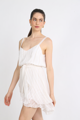 Saia confeccionada em seda com fios de lurex, caimento super fluído, possui babado na barra.