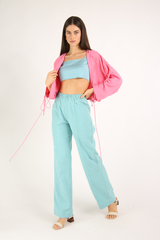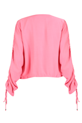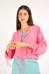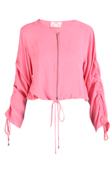 Jaqueta confeccionada em tecido de viscose, com mangas e barra ajustáveis por meio de rolotês