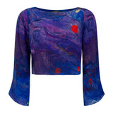 Cropped estampado confeccionado em seda, com manga 3/4, decote