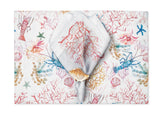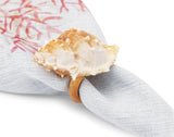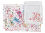 Kit com 2 jogos americanos estampados, 2 guardanapos de linho com detalhe estampado e 2 porta-guardanapos.