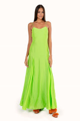 Vestido longo de alça fixa modelo clássico da Kika Simonsen, com decote levemente em "V" e recortes com nesgas dando um movimento lindo na saia. Forro em tecido 100% Viscose.