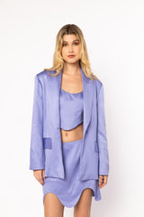 Blazer com shape estruturado, bolsos falsos com lapela e abotoamento frontal. Detalhe de botões aplicados no punho.