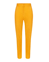 Calça modelagem reta, confeccionada em tecido anarruga, com bolsos laterais, cós com elástico nas costas e fechamento frontal com zíper e colchetes