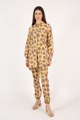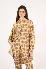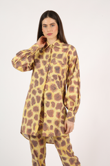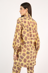 Camisa comprimento alongado com fechamento por botões frontais, mangas volumosas, confeccionada em tricoline de modal.