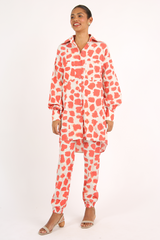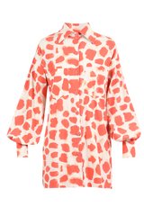 Camisa comprimento alongado com fechamento por botões frontais, mangas volumosas, confeccionada em tricoline de modal.
