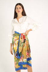As pinceladas de característica única da designer, saem de suas telas, elaboradas em diversas camadas de tinta acrílica dentro de seu atelier. Essas pinceladas, posteriormente, se transformam em estampas exclusivas e atemporais a cada coleção, mantendo uma estética refinada e o processo de criação artsy na sua mais pura essência.