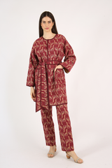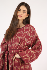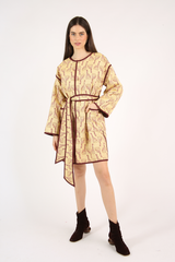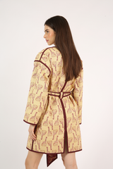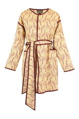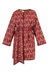 Casaco amplo, dupla face, acabamento em viés, fechamento por colchetes de pressão, bolsos laterais, confeccionado em tecido reciclado com padronagem jacquard exclusiva.
