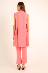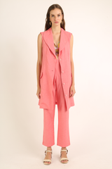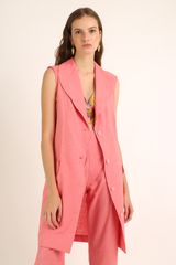 Maxi colete confeccionado em tecido misto de algodão reciclado, com abotoamento e bolsos frontais.