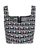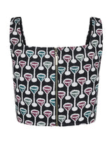 Top cropped sem mangas, confeccionado em jacquard reciclado com desenho exclusivo, fechamento nas costas por zíper.