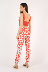 As pinceladas de característica única da designer, saem de suas telas, elaboradas em diversas camadas de tinta acrílica dentro de seu atelier. Essas pinceladas, posteriormente, se transformam em estampas exclusivas e atemporais a cada coleção, mantendo uma estética refinada e o processo de criação artsy na sua mais pura essência.