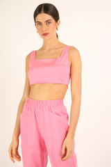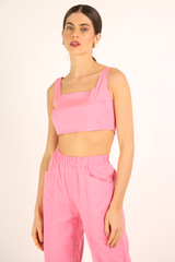 Blusa cropped de alças com fechamento posterior por zíper confeccionada em tricoline de modal