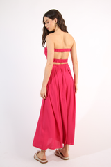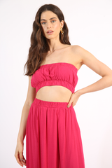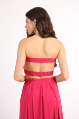 Top sem alças confeccionado em viscose maquinetada com recorte nas costas