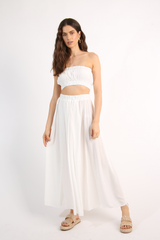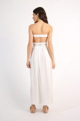 Top sem alças confeccionado em viscose maquinetada com recorte nas costas