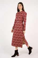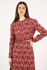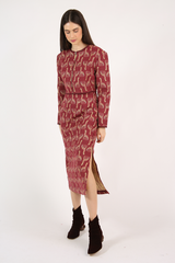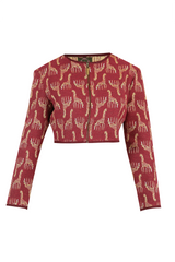 Jaqueta modelagem cropped, acabamento em viés na barra e punhos, confeccionada em tecido reciclado com padronagem jacquard exclusiva.