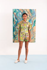 As pinceladas de característica única da designer, saem de suas telas, elaboradas em diversas camadas de tinta acrílica dentro de seu atelier. Essas pinceladas, posteriormente, se transformam em estampas exclusivas e atemporais a cada coleção, mantendo uma estética refinada e o processo de criação artsy na sua mais pura essência.