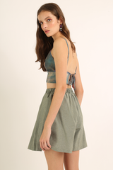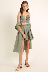 Shorts confeccionado em tecido misto de algodão reciclado com modelagem solta e pregas frontais