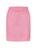 Saia comprimento mini em tecido misto de algodão, modelagem reta, cintura alta, bolsos frontais e elástico na cintura