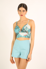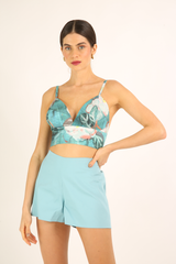 Shorts em tricoline de modal, corte reto, com elástico no cós posterior