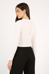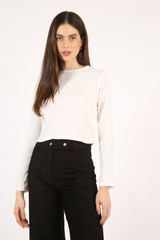 Camiseta manga longa, gola careca, confeccionada em tecido anarruga de modal.