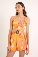 Top estilo bustiê em tecido de viscose estampado com alças reguláveis com aselhas