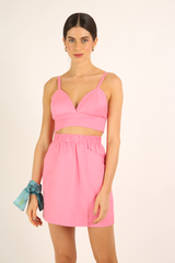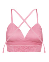 Top em tecido misto de algodão, alças reguláveis com aselhas, elástico posterior para melhor ajuste