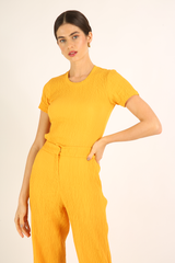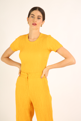 Camiseta confeccionada em tecido anarruga, modelagem próxima ao corpo e decote U