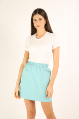 Camiseta confeccionada em tecido anarruga, modelagem próxima ao corpo e decote U