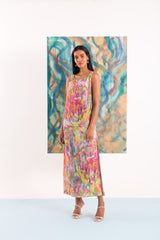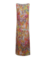 Vestido regata em tecido de viscose estampada com fendas nas laterais