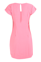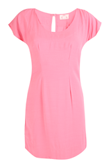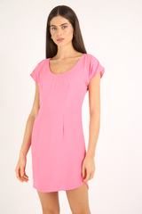 Vestido em tecido de viscose, modelagem acinturada, com fechamento posterior com botão forrado