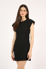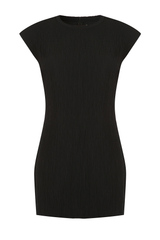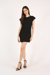 Vestido curto, com mangas estilo muscle tee, modelagem próxima ao corpo, confeccionado em tecido anarruga de modal.