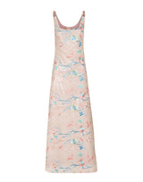 Vestido longo levemente evasê sem recortes. Decote quadrado. Zíper invisível nas costas. Alça com detalhe em fio acetinado torcido.