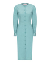 Vestido estilo chemise, confeccionado em tricoline de modal, com fechamento por botões reciclados