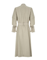 Sobretudo Diamond Kika Simonsen. Modelo com manga longa removível com detalhe de elástico franzido e babado. Possui dois bolsos e fechamento por botões frontais. Acompanha faixa para amarração.