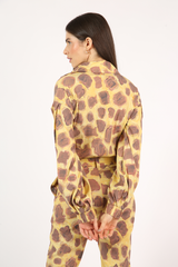 As pinceladas de característica única da designer, saem de suas telas, elaboradas em diversas camadas de tinta acrílica dentro de seu atelier. Essas pinceladas, posteriormente, se transformam em estampas exclusivas e atemporais a cada coleção, mantendo uma estética refinada e o processo de criação artsy na sua mais pura essência.
