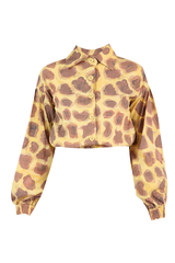 Jaqueta com mangas volumosas, fechamento por botões frontais, confeccionada em tricoline de modal.