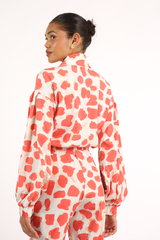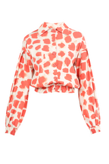 Jaqueta com mangas volumosas, fechamento por botões frontais, confeccionada em tricoline de modal.
